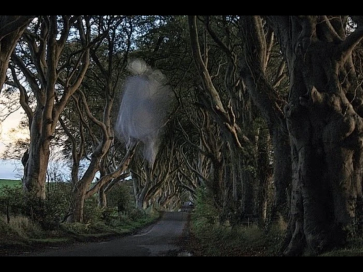 A favourite local ghost story features the grey lady, a spectre that glides along the Bregagh Road, sashaying between the gnarled trees. She vanishes from sight when she passes the last tree.